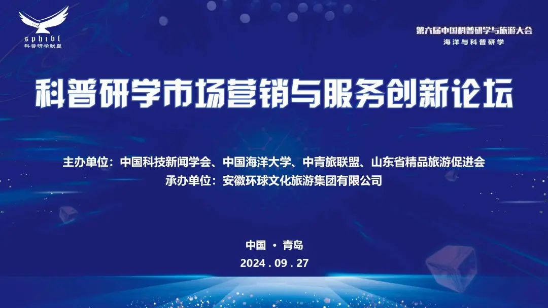2024年9月27日,由安徽環球文化旅游集團承辦的第六屆中國科普研學與旅游大會《科普研學市場營銷與服務創新論壇》在青島中國海洋大學舉行。